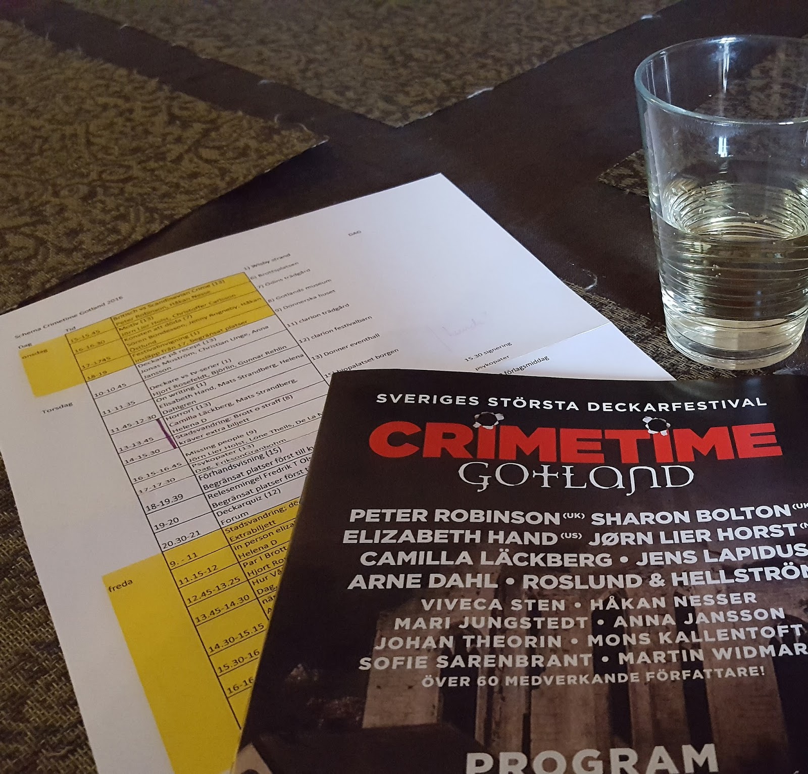 Ett plankstek (när åt man det senast egentligen?) och ett glas vin senare är nu planeringen i full gång inför kommande dagar. Årets program för Crimetime Gotland är späckat med spännande programpunkter och det är onekligen svårt att välja, man vill hinna allt, vill vara överallt på en gång. Kloning känns riktigt lockande och som ett akut behov just nu.